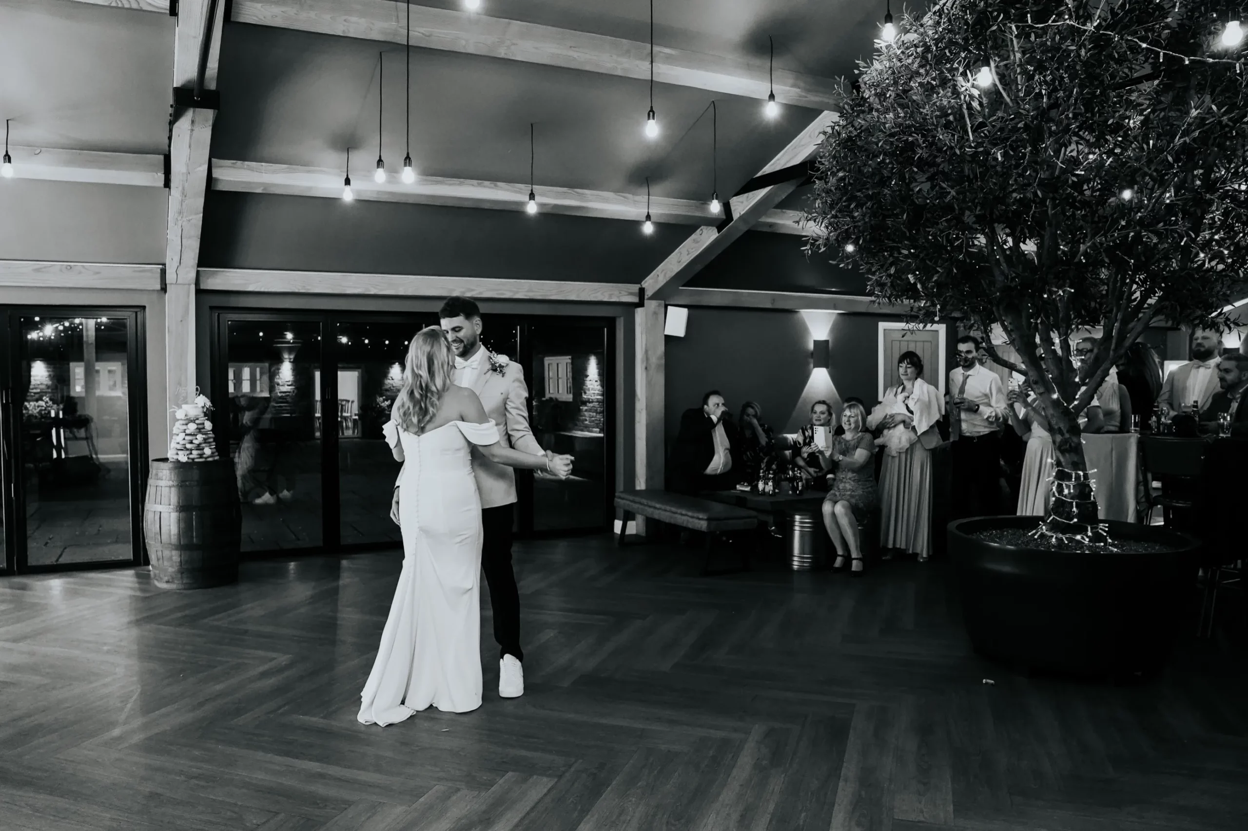 Emily, together with her family, poured her heart into personally designing all the wedding decorations. They crafted stunning greenery archways and centrepieces that beautifully complemented the venue’s greenery chandeliers and the charming red brick ceremony barn with its exposed timber frames. The outdoor ceremony pavilion provided a breathtaking view of the lake, while the spacious country courtyard and cozy evening room contributed to the warm atmosphere. The inviting wedding breakfast barn was the perfect finishing touch for a delightful celebration!
